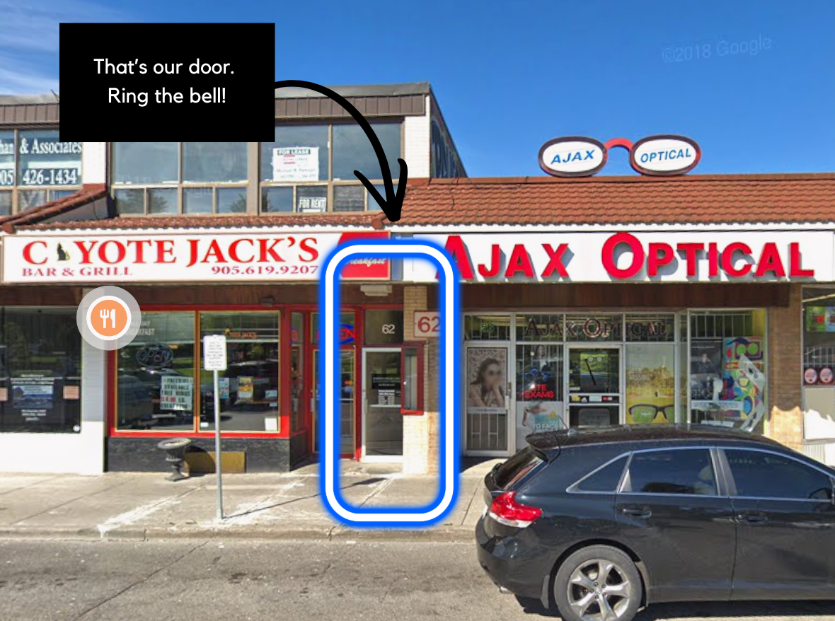 Our Ajax office is just 1.5 km from the Salem Road 401 exit — easy to get to from Ajax, Pickering, Whitby, and even Scarborough. It's right across from the Ajax Public Library on Harwood Avenue, just south of the 401.